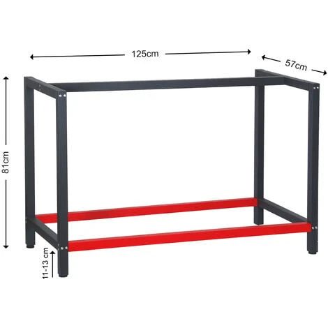 Pied d’établi 125x57x81cm Acier Anthracite Rouge Support Table travail