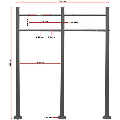 Pied de support Double Boite aux lettres Anthracite Piquet Mailbox