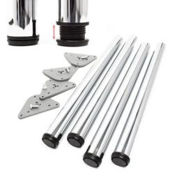 Pied de table Lot 4 Acier inoxydable Chromé Réglable Ø60mm 1100mm