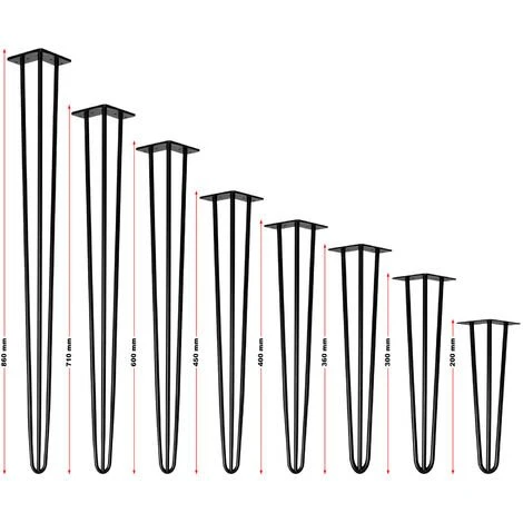 Avec ces beaux pieds de table en acier massif dans un design classique Hairpin, vous pouvez réaliser votre propre table faite maison.