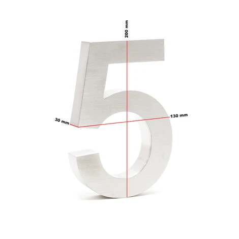 Plaque Numéro Maison 20cm Chiffre « 5 » Design 3D Acier inoxydable