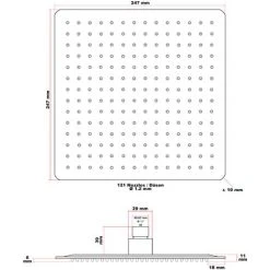 | Dimensions | Dimensions (avec raccordement): 247 x 247 x 50 mm Hauteur: 0,7 mm Nozzles: 121 |