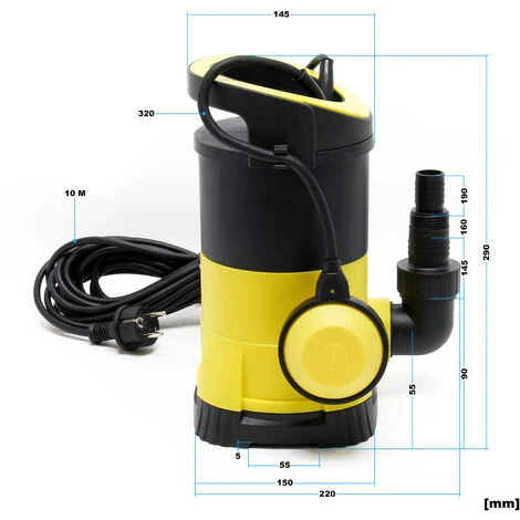 D’une puissance de 400 watts, la pompe peut débiter jusqu’à 7. 000 litres d’eau sale par heure à une profondeur d’immersion maximale de 7 mètres. La hauteur de débit maximale est de 7,5 mètres.