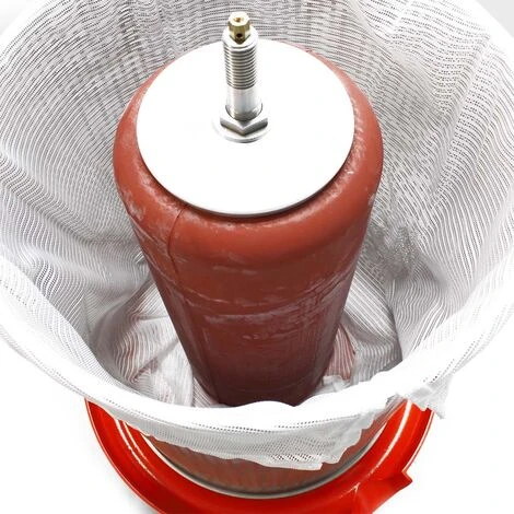 Un mécanisme économique, génial et simple: il suffit de raccorder le tuyau de jardin à une conduite d’eau normale et d’ouvrir le robinet d’eau. L’eau dilate la membrane incorporée en caoutchouc vers l’extérieur et presse le moût contre la grille. Ouvrir et fermer le robinet permet de régler la puissance et la durée de la pression.