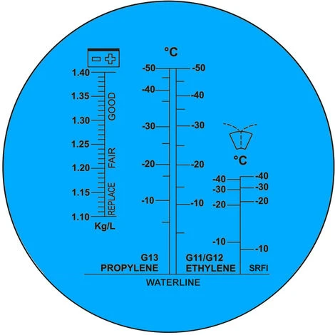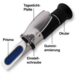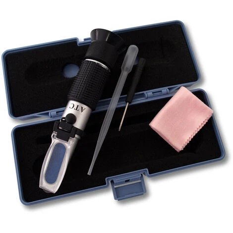 Le réfractomètre est un instrument de mesure qui détermine la teneur en antigel dans les solutions aqueuses, tel que le réservoir de lave-glace ou dans les systèmes de refroidissement des voitures ou des camions. Grâce à ce réfractomètre, vous pouvez également spécifier la densité de l´acide de batterie.