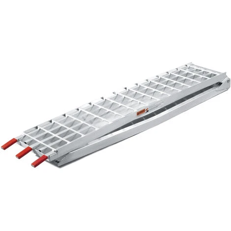 Vous avez besoin de charger vos véhicules et engins de manière sûre et rapide? Nos rampes de chargement vous seront d‘une aide précieuse pour atteindre cet objectif. Munies de larges surfaces à fort profilage, les rampes vous offriront un soutien sans faille surtout dans les endroits humides et glissants. Les chargements et les déchargements en seront largement facilités. Désormais, le chargement de quads, motos, de cyclomoteurs et autres véhicules, dans une remorque ou camionnette, s‘effectuera rapidement et sans grands efforts. Les escaliers et autres obstacles ne poseront aucun problème. Par ailleurs, la forme droite ainsi que la fonction articulée dont la rampe est munie, permet un rangement pratique et peu encombrant, même dans les pièces exiguës.