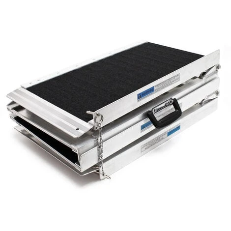 La rampe peut être facilement pliée dans le sens der la longueur grâce à une poignée et portée facilement par un propre poids de 13,6 kg seulement . La rampe dispose d’une capacité de charge de 270 kg. Grâce à son maniabilité facile et domaine d’utilisation flexible , cette rampe vous convaincra très rapidement.