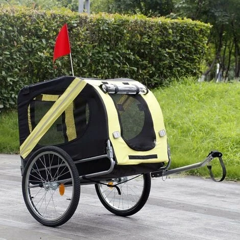 Remorque de vélo Chien Moustiquaire & Protection pluie Noire et jaune