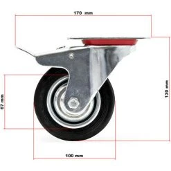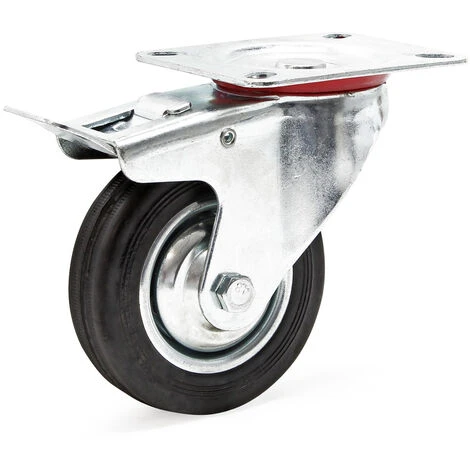 Roulette Blocage double 100mm Roue caoutchouc Jante métal Transport
