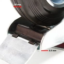 Une roue robuste avec un diamètre de 100 mm est le pneu idéal pour que la charge soit transportée d’un endroit à un autre de manière fiable et sûre. La roulette en caoutchouc solide se caractérise par son fonctionnement silencieux et respectueux du sol ainsi que de sa capacité de garantir un transport sûr même sur des sols inégaux. Contrairement aux roulettes fixes, les roulettes pivotantes ont une très bonne maniabilité grâce à l’essieu pivotant intégré, qui permet de transporter facilement des charges autour des obstacles. Le frein de stationnement assure également une sécurité accrue, puisqu’il empêche le dispositif de transport de se déplacer involontairement lorsqu’il est actionné et assure un maintien sûr grâce à la fonction de double arrêt.