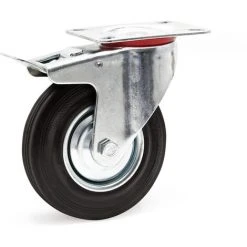 Roulette Blocage double 125mm Roue caoutchouc Jante métal Transport