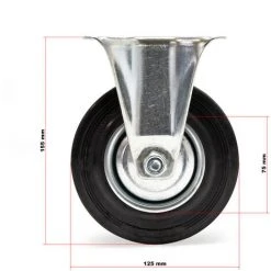 Roulette fixe 125mm avec Roue caoutchouc Jante métal Transport meuble