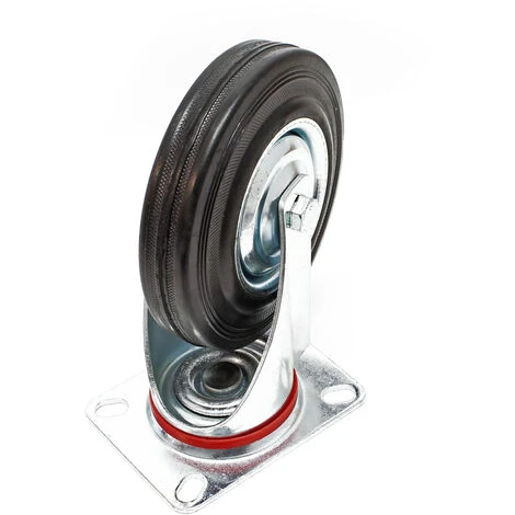 Vous recevrez une roulette fixe en caoutchouc avec une jante en métal incluse et une plaque de montage robuste pour le montage sur des équipements de transport.