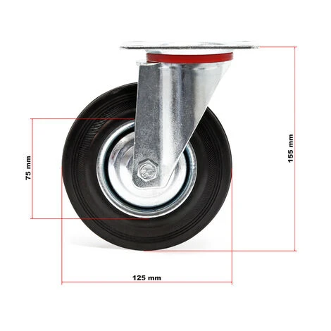 Roulette fixe 125mm avec Roue caoutchouc Jante métal Transport meuble