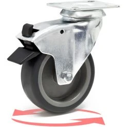 Roulette pivotante 100mm Frein Plastique Gris 80kg Usage sans traces