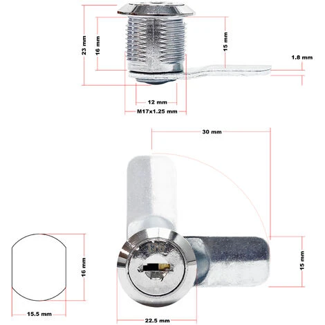 Briefkastenschloss inkl. 2 Schlüssel 16mm 90° nutzbar als Möbelschloss