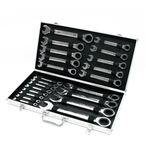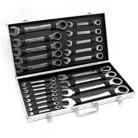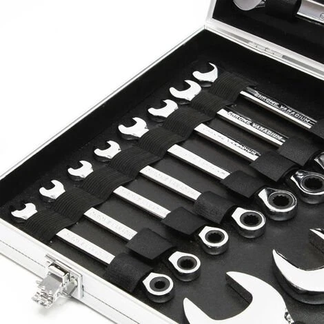 Set Cles à cliquet 22 pièces 6-32 mm Clé de serrage Clè à fourche