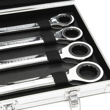 Les clés à fourche sont d’une taille entre 6 et 32 mm. L’autre face de la clé est constituée d’un cliquet à 72 dents.