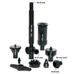 Un tube télescopique et plusieurs embouts pour fontaine sont inclus à la livraison.