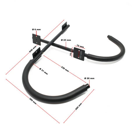 Avec une capacité de charge jusqu’à 45 kg, le support offre un espace suffisant pour y accueillir des kayaks, des canoës, des planches à rame (SUP), des snowboards et des échelles. Grâce à la flexion des poignées, les kayaks et les canoës seront maintenues de manière sûre, sans aucun risque de débosselage.