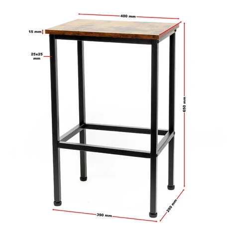 | Dimensions | Table: 120 x 60 x 90 cm Tabouretr de bar: 40 x 30 x 65 cm Traverses du cadre en fer : 25 x 25 mm |
