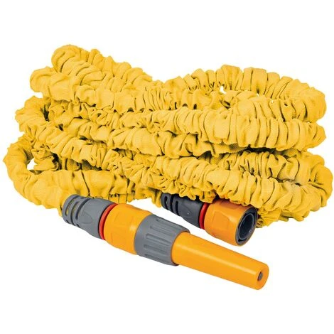 Tuyau extensible 100% fiable, de haute qualitĂ© avec une longueur maximale de 15 mètres. La couche externe hautement rĂ©sistante aux UV, composĂ©e de fibres de polyester tissĂ©es et d’une couche interne en caoutchouc naturel ultra-Ă©lastique, empĂŞche la dĂ©chirure ou la fissuration du tuyau et permet au tuyau de s’Ă©tirer et de rĂ©trĂ©cir jusqu’Ă 3 fois sa propre longueur. Complètement fourni les raccords, le tissu universel et une lance d’arrosage rĂ©glable de jardin.