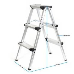 La construction très robuste est en aluminium et conçue pour une charge maximale de 150 kg. Les pieds en caoutchouc de l’échelle assurent une plus grande stabilité même sur les surfaces mouillées. L’échelle, étant pliante, se tranporte et se range facilement.