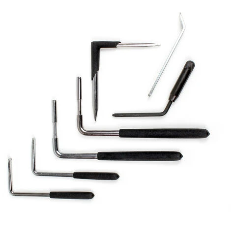 En plus des sept outils de dépose, le kit comprend des inserts de bits avec un profil d’entraînement de 6,35 mm (¼ ») et une longueur de 87 mm. Ils sont compatibles avec les modèles suivants :
