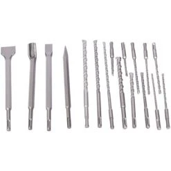 | Dimensions | Forets : 5,5 × 110 mm / 6 × 110 mm 5,5 × 160 mm / 6 × 160 mm / 6,5 × 160 mm / 7 × 160 mm (2 pièces) / 8 × 160 mm / 10 × 160 mm 10 × 260 mm / 12 × 260 mm / 14 × 260 mm / 16 × 260 mm Burins plats : 14 × 250 × 20mm / 14 × 250 × 40 mm |